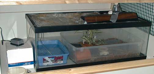 a screened cover. Next to the sweater box but inside the glass tank I have